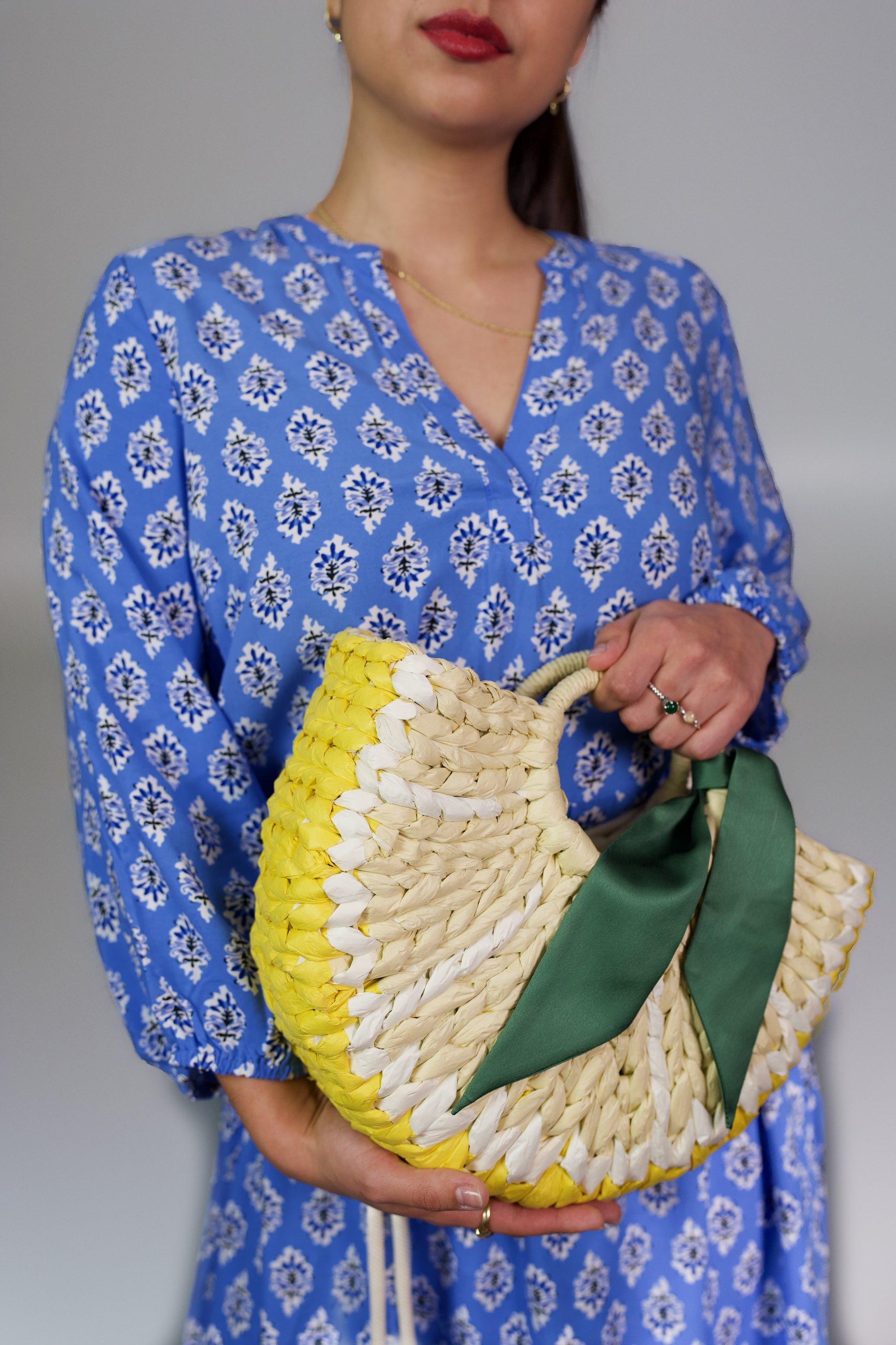 Lleva contigo la frescura y el encanto del verano con este bolso artesanal tejido a mano en tonos amarillo, beige y verde. Inspirado en la naturaleza y elaborado con fibras naturales de alta calidad, este bolso destaca por su diseño semicircular, su textura única y el detalle de la cinta verde que aporta un toque original y sofisticado. Ligero, resistente y ecológico, es el accesorio perfecto para acompañar tus outfits en la playa, paseos al aire libre o eventos casuales, aportando estilo y autenticidad a cada paso.